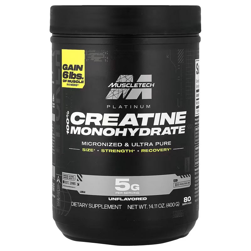 توضیحات محصول: کراتین مونوهیدرات ماسل تک (Muscletech Creatine Monohydrate)کراتین مونوهیدرات ماسل تک یکی از پرفروشترین و خالصترین مکملهای ورزشی در دنیا است که با فرمولاسیون میکرونیزه و جذب سریع، به افزایش قدرت، سایز عضلات و ریکاوری سریعتر کمک میکند. این مکمل دارای 100% کراتین خالص بوده و هیچگونه مواد افزودنی یا طعمدهنده مصنوعی ندارد و به همین دلیل گزینهای عالی برای ورزشکاران حرفهای و بدنسازان محسوب میشود.این محصول در هر سروینگ ۵ گرم کراتین مونوهیدرات خالص را فراهم میکند و در بستهبندی ۴۰۰ گرمی (۸۰ سروینگ) عرضه میشود. استفاده منظم از این مکمل به شما کمک میکند تا در مدت کوتاه، افزایش قدرت عضلانی، بهبود عملکرد ورزشی و رشد توده عضلانی را تجربه کنید.---مزایای کراتین مونوهیدرات ماسل تکافزایش قدرت و توان عضلانی در تمرینات سنگینکمک به رشد و حجمدهی به عضلاتبهبود ریکاوری بعد از تمرینخلوص بالا و جذب سریع (میکرونیزه)مناسب برای ورزشکاران حرفهای و بدنسازان---روش مصرفروزانه یک پیمانه (۵ گرم) کراتین مونوهیدرات ماسل تک را با آب یا نوشیدنی دلخواه خود مخلوط کرده و ترجیحاً بعد از تمرین مصرف کنید. برای بهترین نتیجه، میتوانید در دوره بارگیری، روزانه ۲۰ گرم (۴ وعده) به مدت ۵ تا ۷ روز استفاده کنید و سپس به مصرف نگهدارنده (۵ گرم روزانه) ادامه دهید.---مشخصات محصولبرند: Muscletechوزن: ۴۰۰ گرمتعداد سروینگ: ۸۰ وعدهطعم: بدون طعم (Unflavored)کشور سازنده: آمریکا